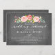 Moderne und schicke Hochzeitsessen-Probe-Einladung mit Aquarellrosen und einem wunderschönen kalligraphischen Schriftart auf einem Imitat-Kalkboard-Hintergrund. Besuchen Sie den Shop, um die Erholung der Rose Garden Einladungssuite zu sehen.