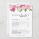 Die Chic Brautparty Spielkarte passt zu unserer Rosé Garden Brautparty Kollektion und bietet eine Aquarellblume in lebhaftem Rosa, Rosa, Rosa, Elfenbein und Frühlinggrün. Eine doppelseitige Karte lasse Ihnen zwei Spiele in einem! Front zeigt Wie gut Sie die Bride kennen und kehrt zu, was auf Ihrem Telefon. Personalisieren Sie mit der Braut zu sein Name und Datum der Dusche. "Was ist auf Ihrem Telefon" Fragen sind vollständig anpassbar mit den Vorlagenfeldern auf der Seite. Für weitere Anpassungen, zögern Sie nicht mich zu kontaktieren!