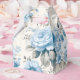 Dieses zarte künstlerische Design zeichnet sich durch blass staubige Rose, Wildblumen und Hydrangea-Blüten aus, die mit hellpastellfarbenem Salbei auf Aubergschalen-Hintergrund geschmückt sind.