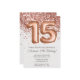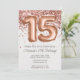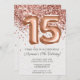 Rose Gold 15. Geburtstagsparty Einladung und Rose Gold elegante moderne 15. Geburtstagsfeier Einladung für ein 15-jähriges Mädchen mit modernem Drehbuch und lustigen Folienballons mit bedrucktem Textur Papier Hintergrund.