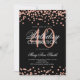 Rose Gold 40. Geburtstag Glitzer Confetti Black Einladung