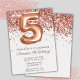 Rose Gold 5. Geburtstagsparty Einladung und Rose Gold elegante moderne 5. Geburtstagsfeier Einladung für ein 5-jähriges Mädchen mit modernem Drehbuch und lustigen Folienballons mit bedrucktem Textur Papier Hintergrund.