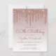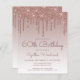 Diese trendige Einladung zum 60. Geburtstag bietet eine funkelnd Rose Gold Imitate Glitzer Tropfen Rand und mehr Hintergrund. Die Worte "60. Geburtstag" und der Name des Ehrengast erscheinen in der lässigen Handschrift der dunklen Rose, mit der Erholung des anpassbaren Textes in serifenlosen Sans-Schriftart. Die gleiche Rose Gold Glitzer Tropfen Design erscheint auf der Rückseite.