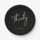 Diese einfache, benutzerdefinierte Papiertafel fügt einem modernen Party aus dem 30. Jahrhundert stilvolle Details hinzu. Dieses Design zeichnet sich durch eine schicke Rose goldene Schrift "Dreißig" mit Sondertext aus. Passende Einladungen und Party-Vorräte sind in meinem Shop BaraBomDesign erhältlich.