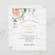 Weißes Holz als Hintergrund. Dekoriert mit einer Rose Gold und rot rosa Blumen, Rose Blume und grüne Aquarell Eukalyptus Blätter, Sprigs, Grün und ein Imitat goldbraun. Personalisieren und fügen Sie Ihre Namen und Hochzeitsdetails. Schwarze und goldfarbene Buchstaben. 1 Blatt = 1 Einladung mit Druckkante bis Kante.