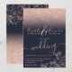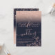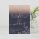 Rose goldblütige Glitzer marineblaue Hochzeit mit Rose goldfarbenen Glitzern ombre Glitzer Gradienten auf einem bearbeitbaren chic marineblau Hintergrund mit eleganten und chic handgezeichneten Blume, Rose Bouquet in Imitaten Rose Gold-Folie mit einer modernen Skriptkalligraphie.