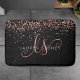Rose Gold Blush Pink Glitzer Glam Monogram Name Badematte