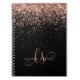 Glam Rose Gold Glitzer Elegant Monogram Notebook. Dieses schicke Notizbuch-Design mit elegantem goldglänzenden Glitzer in der Rose auf schwarzem Hintergrund ist einfach zu personalisieren. Das Design enthält Ihr handgeschriebenes Skriptmonogramm mit hübschen Wirbel und Ihrem Namen.