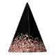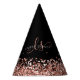 Glam Rose Gold Glitzer Elegant Monogram Party Hat. Dieses schicke Party-Hutdesign mit elegantem goldglänzenden Glitzer in der Rose auf schwarzem Hintergrund ist einfach zu personalisieren. Das Design enthält Ihr handgeschriebenes Skriptmonogramm mit hübschen Wirbel und Ihrem Namen.