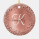 Rose Gold Brushed Metal Glitzer Monogram Name Keramik Ornament