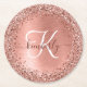 Rose Gold Brushed Metal Glitzer Monogram Name Runder Pappuntersetzer