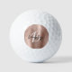 Diese eleganten personalisierten Golfbälle verfügen über ein Monogramm und einen Vornamen in modernem Schwarz-Weiß-Drehbuch auf einer Rose Gold Imitate gebürsteten Metall Hintergrund.