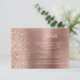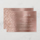 Diese elegante, moderne Kapselkarte für Hochzeitsdetails verfügt über eine Rose vergoldetes Metallhintergrundbild, das mit Imitaten bestreut ist Diamant Glitzer. Passen Sie den weißen Text an, mit dem Titel "Details" in stilvollem Handschriftenskript und dem restlichen Text in serifenem Schriftart. Die Rückseite ist mit einer Rose goldgebürstetes Metall und Imitat Glitzer Design.