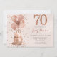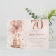 Diese wunderschöne 70. Geburtstagsfeier mit einem 2-Schicht-Rose-Goldkuchen mit Rose-Goldballons, der Nummer 70 in Rose Gold und funkelnd Rose Gold Konfetti auf rot wäre perfekt, um Ihre Ehefrau, Mutter, Schwester, Freundin, Großmutter zu feiern. Es ist traditionell und klassisch, frisch, modern und zeitgemäß. Der Rücken ist eine schöne, koordinierende Rose Goldfolie.