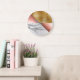 Rose Gold Carrara Marble Gray Geometry Metallic Große Wanduhr