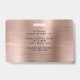 Custom Modern Rose Gold Company Foto ID Abzeichen. Personalisieren Sie dieses Corporate ID Card Abzeichen mit dem Namen, der Position, dem Foto und dem Firmenlogo auf der Vorderseite und dem eigenen Info-Text auf der Rückseite. Das Foto der Mitarbeiter funktioniert am besten in quadratischer Form. Ihr Logo funktioniert am besten als png quadratisches Format mit transparentem Hintergrund. Das Platzhalterlogo, das Sie auf dem Abzeichen sehen, wird durch Ihr eigenes Logo ersetzt.