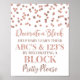 Dekorieren Sie ein Blockspiel-Schild Poster für Babydusche in einer Rose goldenen Konfetti-Muster.