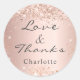 Eine Rose goldener Hintergrund. Mit Konfetti dekoriert. Personalisieren Sie Ihren Vornamen und fügen Sie ihn hinzu. Mit dem Text: Liebe & Danke. Ideal für Gastgeschenke.