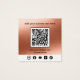 IMITATS Rose Gold QR Code Business Card - Benutzerdefinierte Logos & Social Media Icons Erhöhen Sie Ihre Marke mit dieser modernen Rose Gold Quadrat Visitenkarte, mit Ihrem Logo und QR-Code auf der Vorderseite, und Ihre Website mit anpassbaren Social Media Icons auf der Rückseite. Das elegante, minimale Design verbindet Eleganz mit Stil, perfekt für Unternehmer und kleine Unternehmen. Personalisieren Sie mühelos online: geben Sie Ihre URL ein, um einen QR-Code zu generieren (testen Sie vor der Bestellung mit Ihrem Handy). Aktualisieren Sie die Symbole, um sie Ihren Plattformen anzupassen oder verlassen, wie es ist. Ein ausgereiftes, All-in-One-Netzwerk-Tool. Originelles Design von Ana Garza/Kardz Studio Designs. Wenn Sie Fragen haben, kontaktieren Sie mich bitte über den Zazzle Chat.