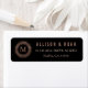 Schöne, elegante schwarze Rücksendeadressen-Aufkleber verfügen über Ihren Single initiale Monogramm umrahmt von einer aufwändigen Rose Gold mandala Design. HINWEIS: Rose Gold ist ein gedruckter Digitaleffekt, nicht Goldfolie.
