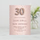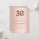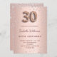 Ein modernes, stilvolles und glamouröses Party zum 30. Geburtstag. Ein Imitat Rose gold metallische Hintergrund mit rosa Diamanten. Der Name ist mit einer modernen dunklen Rose goldfarbenen Handschrift geschrieben, die als Stilschrift dient. Personalisieren Sie Ihre Party-Daten und fügen Sie sie hinzu. Nummer 30 wird mit einem Schriftart im Ballonstil geschrieben, Skript.