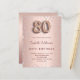 Eine moderne, stilvolle und glamouröse Einladung zu einer 80. Geburtstagsfeier. Ein Imitat Rose gold metallische Hintergrund mit rosa Diamanten. Der Name ist mit einer modernen dunklen Rose goldfarbenen Handschrift geschrieben, die als Stilschrift dient. Personalisieren Sie Ihre Party-Daten und fügen Sie sie hinzu. Nummer 80 wird mit einem Schriftart im Ballonstil geschrieben, Skript. Zurück: Rose goldener Hintergrund, Tipps zur Postkartengestaltung: Wenn Sie ihn nicht gewollt haben, um wie eine Postkarte auszusehen, klicken Sie auf Anpassen, gehen Sie auf die Rückseite und entfernen Sie den Teiler und post Briefmarke.