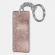 Mit Monogramm eleganter und gürtiger Schlüsselanhänger mit Rose Gold Imitat Glitzer tropfen auf eine Rose Gold Imitate gebürstete metallische Hintergrund. Personalisieren Sie mit Ihrem Namen in einem stilvollen, weißen Skript mit Swashes.
