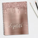 Maßgeschneidertes, elegantes Notebook mit Rose Gold Imitat Glitzer tropfen eine Rose Gold Imitate gebürstete metallische Hintergrund. Personalisieren Sie mit Ihrem Namen in einem stilvollen, weißen Skript mit Swashes.