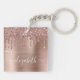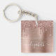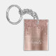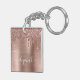 Maßgeschneiderter eleganter und gürtiger Schlüsselanhänger mit Rose Gold Imitate Glitzer tropfen vor einer Rose Gold Imitate metallische Folie Hintergrund. Personalisieren Sie mit Ihrem Namen in einem stilvollen, weißen Skript mit Swashes.