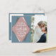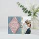 Elegant, schick und modern mit Retro-Vibe, Imitate gedruckt Rose goldene geometrische Diamantform Kontur auf staubblauen, violetten, rosa und kohlegrauen Diamantausschnitt, Rett-the-Date Hochzeit Postkarten. Dieses klassische und raffinierte Design ist perfekt für das trendige und stilvolle Ehepaar. Personalisieren Sie Ihre eigene Nachricht auf der Vorderseite sowie ein individuelles Monogramm auf der Rückseite. Das gesamte Foto-Druckdesign.