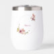 Sip in style with this romantic rose-gold floral wine tumbler. Perfect for outdoor events, picnics, camping, or relaxing at home. Add your name or initials inside the elegant frame.