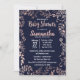 Rose Gold Floral Navy Blue Brush Babydusche Einladung