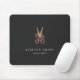 Das elegante, personalisierte Mousepad für Ihr Salon- oder Friseurgeschäft besteht aus zwei Textzeilen in klassischer Weißschrift auf einem kohlegrauen Hintergrund, der mit einer Blume-geschmückten Schere in Imitaten Rose Goldfolie verziert ist.