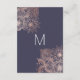 Moderne und elegante Imitate druckten die goldenen Blume der Rose auf marineblau, die Informationskarte für Hochzeiten. Dieses klassische und raffinierte Design eignet sich perfekt für den anspruchsvollen, stilvollen und trendigen Absolventen. Personalisieren Sie Ihre eigene Nachricht auf der Vorderseite und ein individuelles Monogramm auf der Rückseite. Das gesamte Foto-Druckdesign.