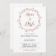 Rose Goldfolie Effekt Hochzeit Speichern Sie die Datumskarten mit Blumenkranz und benutzerdefiniertem schwarzen Text - Sie können Namen und Hochzeitstag ändern, gedruckt auf weißem Hintergrund