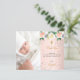 Eine moderne und elegante Taufe danke Ihnen Karte. Die goldfarbenen Imitat aus gürteliger Rose sind metallisch und mit wasserfarbenen Weißtönen, Rosa, Rose-Goldfloralen und Imitate-Diamanten geschmückt. Personalisieren Sie und fügen Sie Ihr Foto des Kindes, danke Ihnen Notiz und Name.