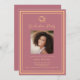 Rose mit goldenem Hintergrund, mit goldenem Rahmen dekoriert, und ein Imitat mit goldener Graduiertenkappe. Personalisieren und fügen Sie einen Namen und Details des Fotos hinzu. Weißer Text.
