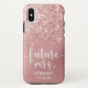 Diese wunderschöne Rose Gold-Folie-Handy-Gehäuse mit Glitzer, die von oben nach unten kaskadiert und in einem modernen Skript-Schriftart "Zukunft mrs." steht und Ihren künftigen verheirateten Namen und Hochzeitstermin hat, ist perfekt für Sie bei der Planung Ihrer Hochzeit. Es wird auf deinem Handy phantastisch aussehen. Eine Braut muss haben!