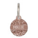 Glamouröse Rose Gold Glitzer Begleiter Identifizierungs-Tag mit anpassbaren Vorlagen für den Namen Ihres Haustieres, Besitzer-Nummer und Adresse. Fügen Sie eine stylische, mädchenhafte Touch zu Ihrem individuellen Hundetag oder einem personalisierten Katze-Tag hinzu und passen Sie diese mit Ihren Informationen auf dem Sack des ID-Tags an, sodass Ihr Haustier, wenn es jemals verloren geht, zurückgegeben werden kann Zuhause. Ändern Sie den Stil und die Farben des Schriftartes mithilfe des Designtools.