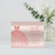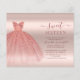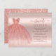Eine hübsche, moderne und schicke, süße 16-jährige Einladung mit Imitaten Rose Goldkleid und Glitzer spritzt vor dem Hintergrund rot-rosa. Fügen Sie einfach die Geburtstagsdetails hinzu, indem Sie auf die Schaltfläche "Personalisieren" klicken