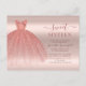 Eine hübsche, moderne und schicke, süße 16-jährige Einladung mit Imitaten Rose Goldkleid und Glitzer spritzt vor dem Hintergrund rot-rosa. Fügen Sie einfach die Geburtstagsdetails hinzu, indem Sie auf die Schaltfläche "Personalisieren" klicken