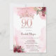 Rose Gold Glitter Roses Crown 90th Birthday Party Einladung