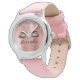 Kinderuhr aus Edelstahl mit rosa Lederarmband