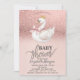 Cute baby shower invitation features rose gold glitter bokeh with a cute swan baby shower. These baby shower invitations are easily customized for your event by simply adding your details.