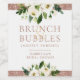 Rose Gold Rosa Glitzer Brautparty Flasche Label mit personalisierten "Brunch and Bubbles" ... "Meist Bläschen" Titel für etwas Spaß zusammen mit dem Namen der Braut und ein schönes hübsch neutrales, weißes Blumendesign.