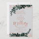 Rose Gold Typografie Glitzer coneti Floral graue Hochzeitseinladung mit handgemalten grünen Aquarell Blattwerk. Der graue Hintergrund ist vollständig anpassbar