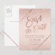 Rose Gold Glitzer Drehbuch rot Rosa Save the Date Ankündigungspostkarte