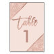 Rose Gold Typografie auf individualisierbaren rot rosa rosa Rosa Glitzer Farbe Block, und Imitate Rose goldene geometrische Streifen chic Tischnummer Hochzeit , ideal für elegante, Strand Hochzeit,