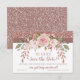 Melden Sie das Datum Ihrer bevorstehenden Nuptials mit unserer Rose Gold Glitzer Floral Speichern Sie die Datumskarten! Personalisieren Sie sich mit den Details Ihrer Veranstaltung, um eine von der Art zu schaffen, die Ihre Freunde und Familie sicher schätzen werden. Entworfen mit rosa blühenden Rose und Imitate Rose Gold Glitzer auf der Vorder-und Rückseite.