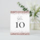 4,5 x 5,6" Halbschall, ähnlich dick wie eine Postkarte, mit 1 pro Blatt. Rose Gold Glitzer Hochzeitstisch kein Weiß. Table ist in einem Set Handschrift Stil Skript und Ihre Tischnummer unter mit Imitate Glitzer Ränder. Personalisieren Sie die Nummer einfach. Das gleiche Design ist auch auf der Rückseite.